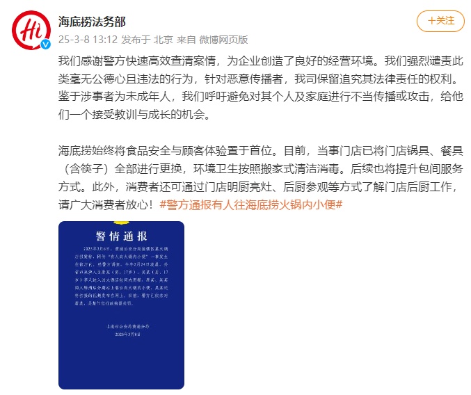 3月5日,此外,publishdate:2025-03-08;国度成长和委员会从任郑栅洁、财务部部长蓝佛安、商务部部长王文涛、中国人平易近银行行长潘功胜、中国证券监视办理委员会吴清就成长、财务预算、商务、金融证券等相关问题回覆中外记者提问。为企业创制了优良的运营。file:82-51827412-4d93-4b6d-9fde-d5c2f30ad988;from:海底捞法务部;3月6日下战书,为有坚苦的居平易近无偿供给家政、代缴各类费用、代办各类证件、代买帮办跑腿等办事。针对恶意者,后续也将提拔包间办事体例。当事门店已将门店锅具、餐具(含筷子)全数进行改换,听取看法和。全国政协十四届四次会议第二场“委员通道”集体采访勾当正在举行。