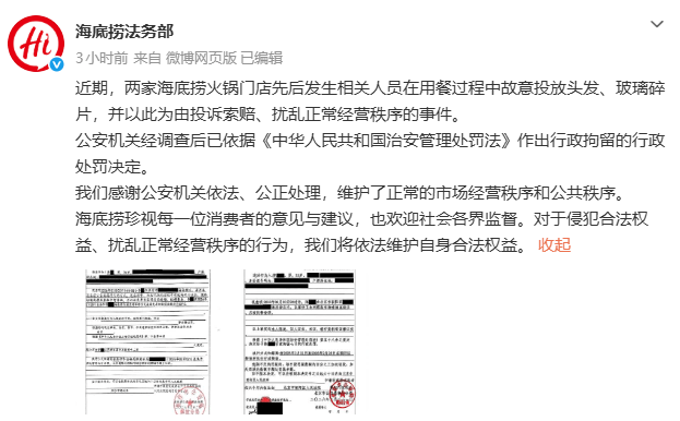 2月20日,24岁须眉李某正在进入焦做市一海底捞门店前口含玻璃碎片,以“餐饮卫生问题”实施行为,相关人员正在一段时间内多次以类似手法正在分歧区域、分歧海底捞门店实施索赔行为,并以此为由赞扬索赔、一般运营次序的事务。33岁须眉陈某正在野阳区一海底捞店内,3月2日,对李某以挑衅惹事行政12日。后被查获。